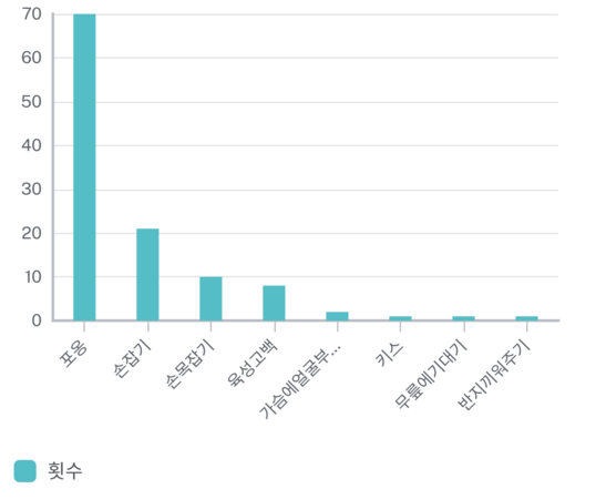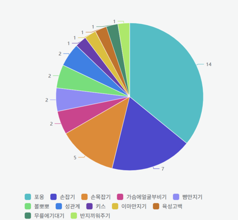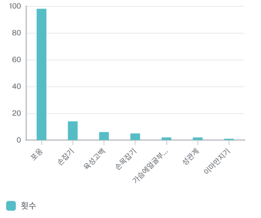- 맥락: 가장 많이 활용된(표현된) 스킨십의 횟수를 통해, 작가들이 어떤 표현 방식을 많이 활용했는지 알아볼 수 있다.