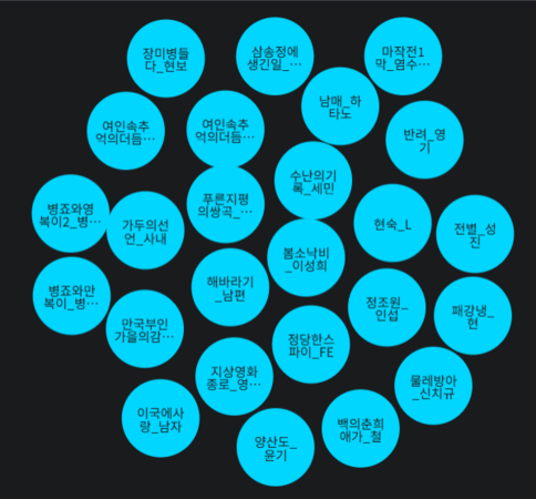 | JJE25DGU | 🐣 | 시대에 상관없이 '연애'라는 것은 언제나 흥미의 대상이 되는 것 같습니다. Act 클래스에 분류된 행동 유형이 인상 깊었습니다. 흔히 고백이나 포옹 등 연애 서사에서 쉽게 접할 수 있는 행동도 있었지만, 가슴에 얼굴 부비기 등 특정한 스킨십이 여러 연애 서사에 반복적으로 등장했다는 점이 가장 재미있었습니다. 다만, 작품의 샘플 데이터가 조금 부족하다고 느껴서 매체의 범위를 조금 더 넓혀서 작품을 선정했으면 좋았을 것 같다고 생각했씁니다. |