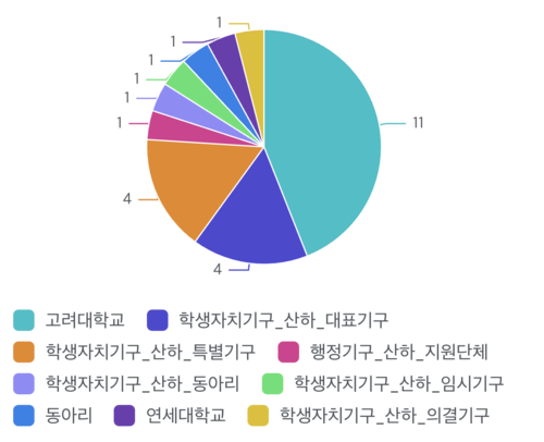 행위자 차트에서 학생자치기구 산하에 해당하는 단체는 24건 중 13건, 즉 약 50%의 비중을 차지한다.