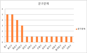서울시 '구'별로 문구 수정이 필요한 표석을 살펴보면, 중구가 5개, 용산구 5개, 종로구 4개, 서대문구 3개이다. 광진구, 성북구, 마포구, 은평구, 송파구, 동작구, 성동구, 동대문구, 금천구, 강북구는 각각 1개씩이다.