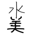 - 아름다울 미(美)와 물 수(水)자를 합하여 분수대 모양을 본 떠 밑에 아름다운 모양의 받침이 있고 그 위로 물이 나오는 것과 같게 하였습니다.