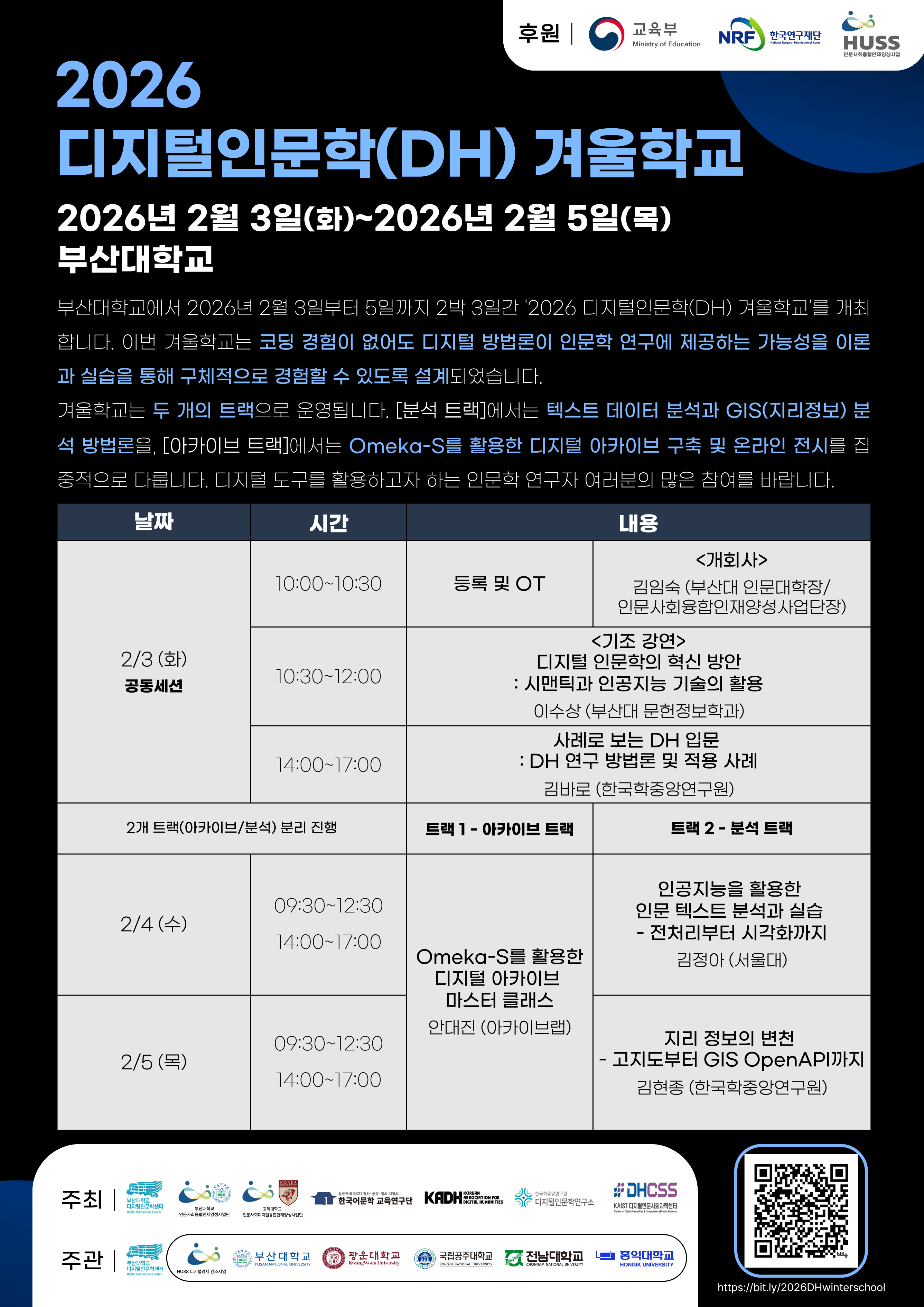 | 2025년 11월 29일 (토) 20:33 | 2026 디지털인문학 겨울학교 포스터.png (파일) | 869 KB | Kimseoyun | 2026 부산대 진행 디지털인문학 겨울학교 포스터 | 1 | |